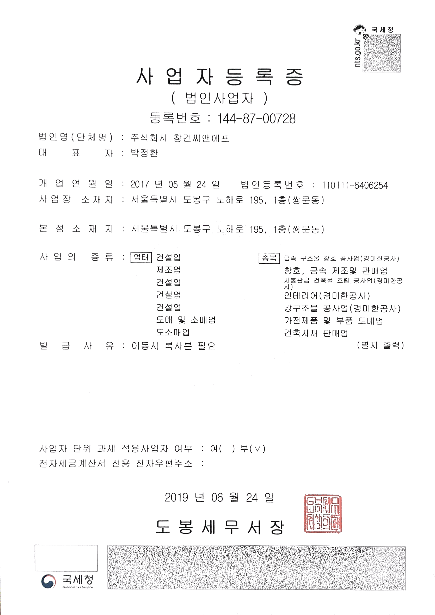11/27/2019 12:49 PM 200661 창건 사업자등록증.png